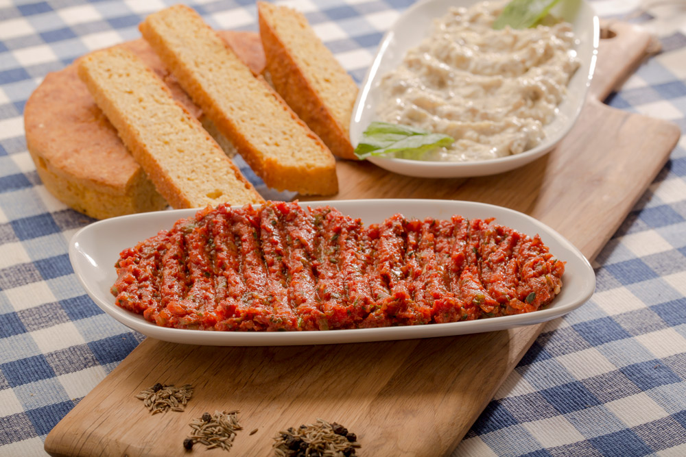 Domates, soğan, maydanoz, kırmızı biber, sivri biber, zeytinyağı ve biber salçası ile ince kıyım hazırlanır pul biber eşliğinde servis edilir.
